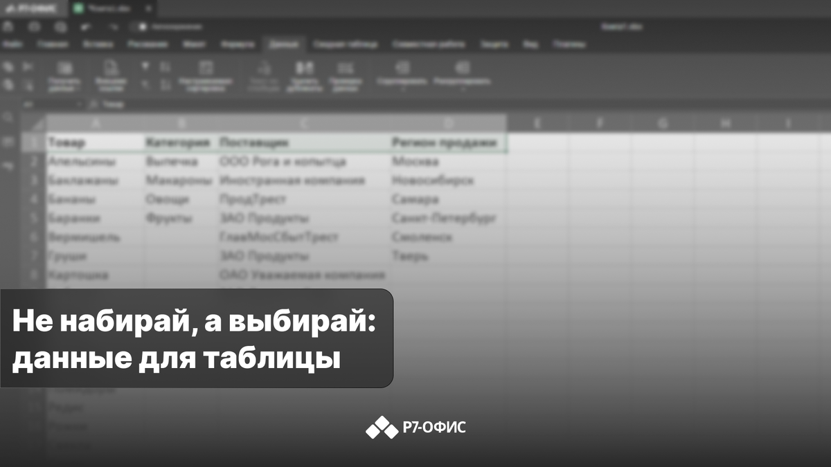 Возьмем таблицу, в которой существует несколько категорий. Их необходимо вводить в каждую строку. Количество значений в каждой категории ограничено. Для иллюстрации используем нашу любимую тестовую историю с продуктами, поставщиками, регионами.