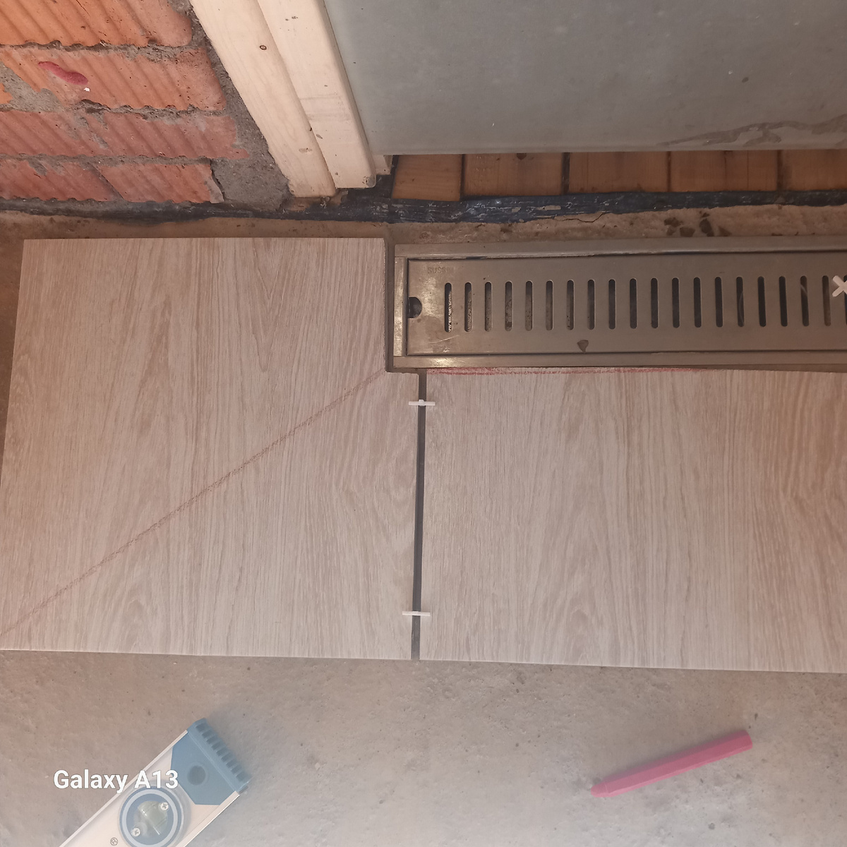 Как я уже недавно писала, мои очумелые ручки не могут жить спокойно. Правда, после бурной кипучей деятельности они часто требуют тёплую ванну, зеленку, пластырь и питательный крем, но это все второстепенно. Главное - результат. Вот на днях мы с ними пол в бане делали. Слив и бетонную стяжку сделали рабочие, а моя задача была - положить плитку. Раньше мне такое уже приходилось делать, но тут было сложнее, так как в полу организован слив воды, и нужно подрезать плитку по форме слива, а еще сделать к сливу уклон, чтобы вода не задерживалась на полу. Зато у меня теперь не возникает сложности с отрезанием плитки - достаточно надеть на болгарку нужный диск. Приступаем. Сначала разложила вокруг слива "конвертик", от которого пойдёт уклон вверх к стенам и углам. Наметила линию разреза на угол Разрезала плитки по линии разметки, положила "на сухую" ещё раз. Все замечательно. Теперь развожу по инструкции плиточный клей для влажных помещений и начинаю приклеивать плитку по разметке, все вр