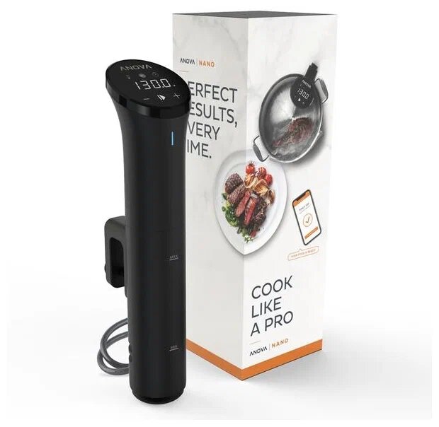 Погружной термостат Anova Precision Cooker Nano отличается простотой в использовании и компактностью - наслаждайтесь кулинарными шедеврами в любое время и в любом месте, его удобно взять с собой на выходные или на встречу с друзьями, вес устройства составляет всего 0,7 кг. Благодаря функции Bluetooth вы сможете в полной мере использовать кулинарное приложение Anova и получать доступ к множеству рецептов, советам по технике Су-вид и обновлениям прошивки. Новая система контроля температуры работает с точностью до 0,1 °C! Функция Multicook позволяет вам одновременно управлять несколькими термостатами Anova через мобильное приложение, готовить спаржу, сладкий картофель, нежного лосося и даже крем брюле - все устройства будут работать синхронно и завершат приготовление в одно и то же время. Технология Су-вид долгое время была доступна только профессиональным поварам и ресторанам, так как оборудование было сложным и дорогостоящим. Однако каждый желающий должен иметь возможность готовить на п