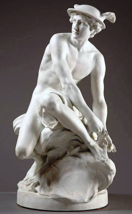 У нас Жан-Батист Пигаль (1714-1785) известен, прежде всего, как автор этой небольшой статуи, которую Шарден изобразил в знаменитом "Натюрморте с атрибутами искусств", но он создал немало замечательных работ и был, пожалуй, не менее выдающимся скульптором, нежели близкий по возрасту Фальконе. В последние десятилетия его жизни на смену рококо шел неоклассицизм, но даже в поздних своих произведениях Пигаль более "рококошник", чем неоклассицист. При этом он был истинным реалистом, что особенно заметно в его портретах Надгробие Морица Саксонского. 1753-1765 Жан-Батист Пигаль происходил из семьи мастеров-краснодеревщиков. Учился скульптуре у Робера Ле Лоррена, ученика Ф. Жирардона, а затем у Ж.-Б. Лемуана. Однако его заявление о приёме в Школу изящных искусств в Париже было отклонено. Потерпев неудачу и в конкурсе на получение Римской премии, он в 1734 году отправился в Италию на собственные средства. Благодаря финансовой поддержке скульптора Гийома Куст