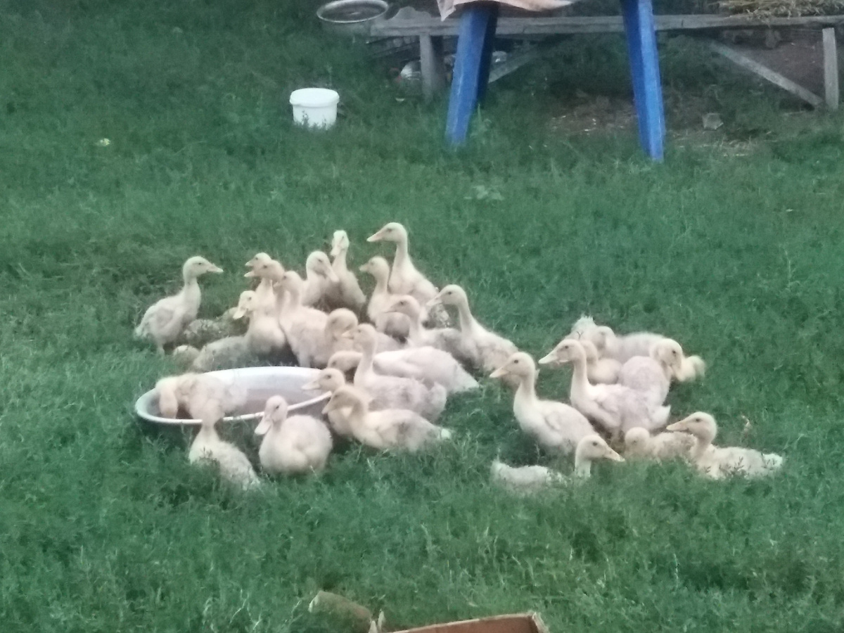 сегодня неделя как купила утяток кроссы Агидель. по идее им сегодня 24 дня. но явно видно что разновозрастные.. первые 3 дня держала в загоне, который делала для бройлеров. Пили ооочень много воды. Дня 3 назад выпустила на свободный выгул. просто вот так у меня по двору гуляют. в этом году у меня идеальный газон из спорыша. они рады очень. Думаю еще взять штук 30, возможно кроссы СТ% или Стар 53. но это не точно. Хочу купить автоклав и готовить вкусняшечки на продажу- паштеты, риеты, тушенку, ножки конфи и прочие деликатесы. Ах да. и колбасы вяленые.. Ну и себе конечно. Утята вроде растут. но на свободном выгуле кушают мало. меня это беспокоит. Они должны же откармливаться. Сейчас утята 30шт кроссы Агидель. взяла в возрасте 17 дней примерно не смотрите, что с виду грязные. они поначалу на свободном выгуле забивались в угол в пыли. сегодня привыкли ко мне и оперение явно улучшилось