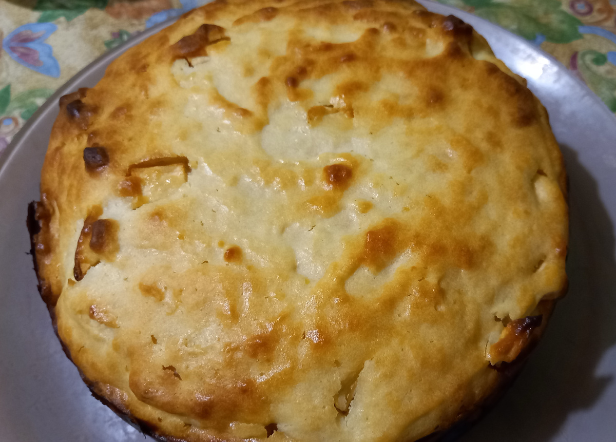 Взбиваем 3 яйца с 150 г сахара. Добавляем 250 г сметаны, 50 мл растительного масла, 300 г муки с разрыхлителем, цедру одного лимона, и яблоки, нарезанные кубиками. Все перемешиваем. Выкладываем в форму для запекания. Ставим в духовку до готовности.
