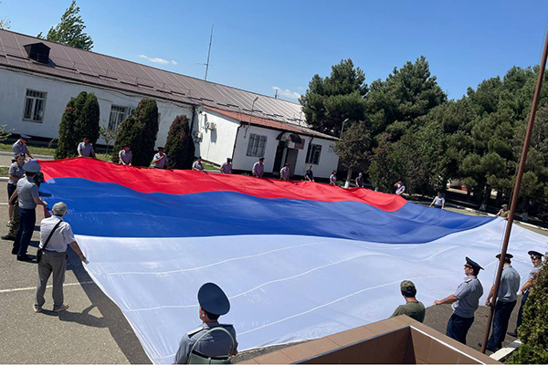 Сотрудники уголовно-исполнительной системы Дагестана развернули 25-метровый флаг России