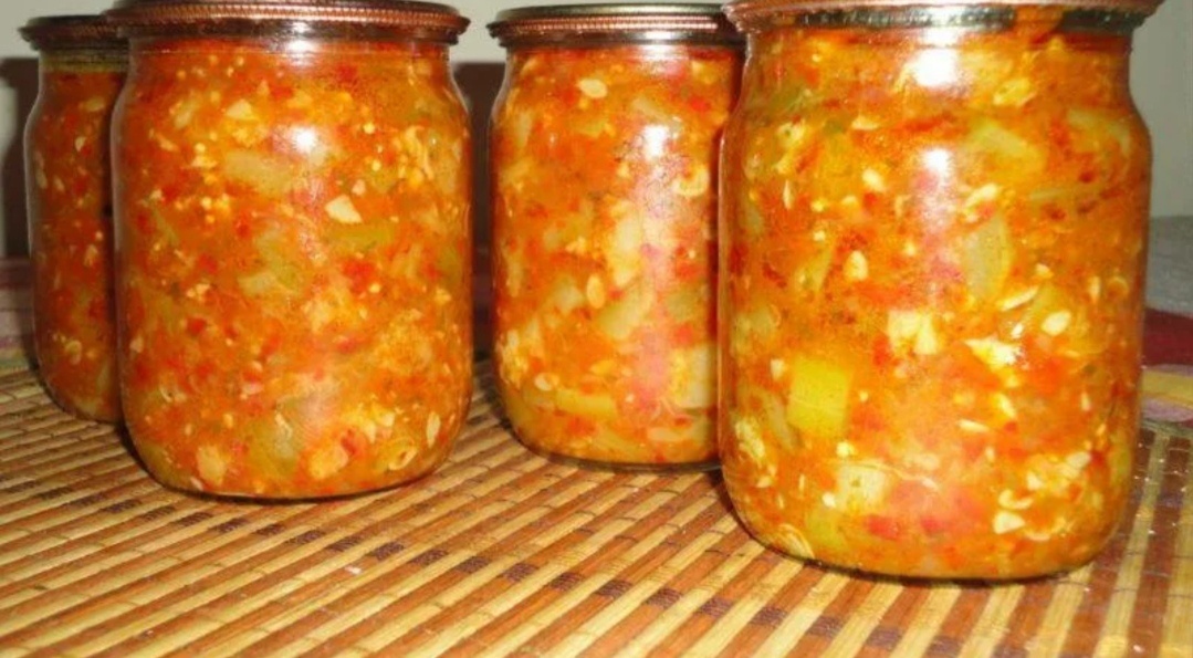 В этом году у нас на огороде случилось нападения кабачков искала кучу рецептов, но именно это понравился больше всего😁 Вот какие ингредиенты нужны : -Кабачок ( патиссоны без кожуры и семян) - Перец болгарский ( очищенный ) _1 кг - Помидор 1 кг -Петрушка 200 г - Чеснок ( головки!) _2 шт -Соль 80 г - Сахар 200г -Масло растительное 350 мл - Уксус 9% _ 100 мл - Перец чёрный ( горошек) 12 шт - Перец душистый ( горошек) 5 шт Время приготовления : 120 мин Кол-во порций : 6 Промыть петрушку, жесткие стебли можно не удалять, чеснок почистить. Помидоры, петрушку и чеснок пропустить через мясорубку. Кабачки почистить, если семечки жесткие, удалить, мягкие удалять не нужно. Кабачки порезать кубиками или дольками, не очень крупно. Перец почистить, порезать кубиками или колечками, тоже не крупно. К помидорной смеси добавить сахар, соль, масло, перец и уксус, довести до кипения. В кипящий маринад положить кабачки и сладкий перец. Кипятить полученную массу 60 мин. Через полчаса масса буд