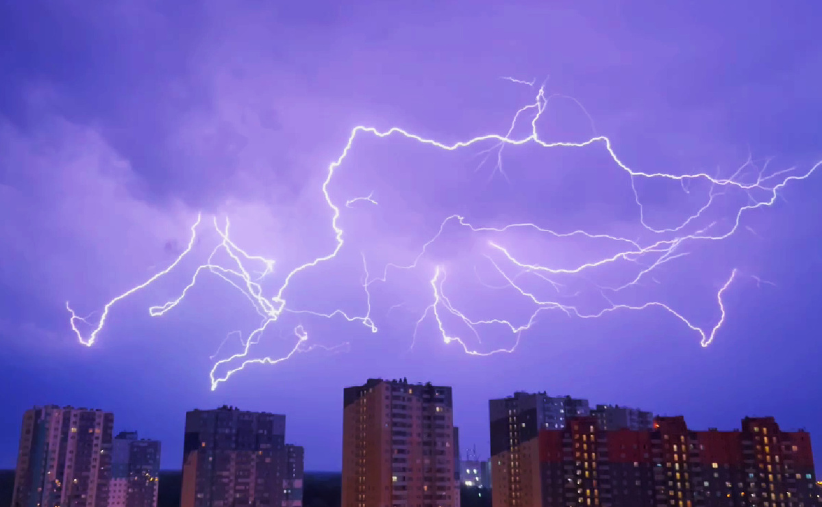В ночь с 22 на 23 августа в небе над Петербургом происходило удивительной красоты и величественности природное электросветовое шоу: десятки молний вырывались из облаков, освещая ярчайшими вспышками самые разные районы города — от исторического центра до спальных кварталов. Некоторые разряды будто били точно в цель — например, в городскую телебашню подряд ударили несколько молний. Другие, словно обретя свободу, ветвились и распускались в небе над крышами жилых высоток, распахивая небосвод голубовато-белыми кривыми, но не устремляясь к определенной цели. Небо как будто трескалось, и тонкие ломаные сверкающие линии разбегались по нему во все стороны, отчего возникало ощущение, что отколовшиеся куски небесного купола сейчас вот-вот начнут сыпаться вниз, как облупившиеся куски краски со стены. Апокалиптические впечатления подкреплялись продолжительными и невероятно мощными раскатами грома, следовавшими за вспышками. Россыпи разрядов вкупе со звуковым сопровождением и впрямь походили на масш