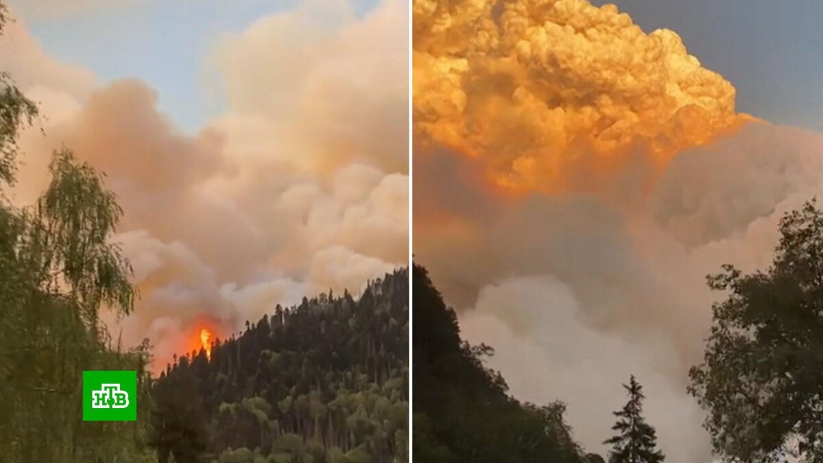 [ Смотреть видео на сайте НТВ ] Впечатляющие кадры поступают из Карачаево-Черкесии. Мощный пожар вспыхнул в Тебердинском национальном парке на Домбае. Возгорание началось в одном из ущелий, полыхают небольшие хвойные деревья, валежник и сухостой. Огонь подбирался к туристам, которые отдыхали в живописной местности. Спасатели эвакуировали в общей сложности 236 человек, в том числе 43 ребенка. Сейчас пламенем охвачены около 6 тысяч квадратных метров. Как сообщили в МЧС, до ближайшего населенного пункта — поселка Домбай — около 7 километров, ему ничто не угрожает. К ликвидации возгорания уже привлекли более 300 специалистов и спецтехнику. Как заявил глава региона, возможно, для тушения также используют авиацию. [ Смотреть видео на сайте НТВ ]
