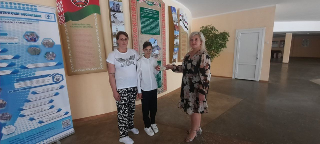 Помощь в подготовке к школе оказала и Сморгонская районная организация Белорусского общественного объединения ветеранов. Денежный сертификат на приобретение товаров в магазине ОАО «Рубин» вручен приёмной семье Скуранович.