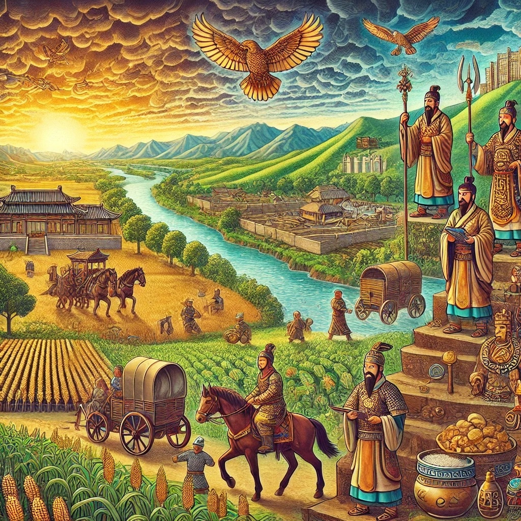 Китай , одна из величайших цивилизаций мира, имеет свои корни в простых, но глубоких открытиях, связанных с земледелием. Начав с выращивания первых зерен на берегах реки Хуанхэ, это общество шаг за шагом развивало сложные социальные структуры, создавая богатые культурные традиции и мощные государства. В основе их успеха лежало земледелие, которое позволило перейти к оседлому образу жизни и накоплению ресурсов. Эти изменения способствовали возникновению социальной стратификации, появлению элит и формированию централизованной власти, что привело к созданию первых великих империй. Развитие технологий, особенно бронзового производства, и использование религиозных ритуалов для легитимизации власти усилили эту структуру, обеспечивая Древнему Китаю могущество и процветание. Однако с этим пришли и вызовы — внутренние конфликты, социальное неравенство и необходимость защиты от внешних угроз. Этот абстракт представляет собой краткий обзор основных этапов развития древнекитайской цивилизации, подчёркивая ключевые факторы, которые привели к её подъёму и укреплению.