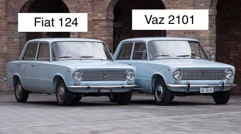 Некоторые автолюбители знают, что свою первую модель АвтоВАЗ почти полностью скопировал с итальянского автомобиля - Fiat 124. Так в чём-же отличия итальянской «Копейки» от советской? Как вы уже поняли, Fiat слева, а ВАЗ справа. Сразу бросается в глаза отличие переднего бампера. У итальянца клыки маленькие, а у его последовательницы - наоборот, большие. Также видны отличия в колпаках на колёсах. Если внимательно присмотреться, то можно увидеть то, что у «Жигуля» дверные ручки вжаты в дверь, а у «Фиата» они выпирают, и сделаны наподобе ручек Москвича 412, или же Волги 21. Сзади автомобили опять-же отличаются бамперами. У «Фиата» маленькие клыки, а у «Копейки» - большие. Отличаются и замки багажника. В салоне отличий нет вообще, отличается, разве что, цвет обшивки, но у каждого из этих автомобилей было по нескольку цветов салона, так что рассуждать об этом бесполезно. А вот двигатели у автомобилей отличаются. У «Фиата», (тот, что слева) был двигатель объёмом 1.6 литра, мощностью 95 л.с.,