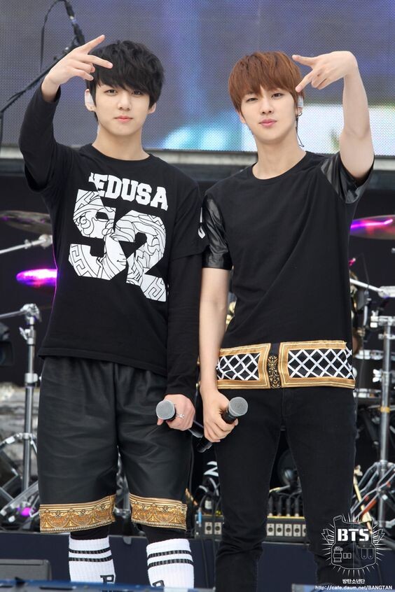 Их дружба меня всегда умиляла, восхищала и смешила, это шалуны и сорванцы, каких свет не видел. Вы знали, что Джин и Чонгук очень близки в реальной жизни? Джин всегда был рядом с Чонгуком со времён обучения младшенького в средней школе и до её окончания. Когда пятнадцатилетний Чонгук переехал в Сеул из Пусана, ему было трудно обосноваться в новом городе, поэтому он думал о возвращении домой. Джин отговорил Чонгука, познакомил его со своей семьёй, водил его в рестораны, показывал Сеул и относился к нему, как к младшему брату, чтобы Чонгуку понравилось в Сеуле. Благодаря Джину, макне остался в группе и с тех пор их дружба только крепчает. Они всегда шутят, что Джин вырастил Чонгука и сделал его своим другом. А ведь и правда, хён возил его в школу, с юных лет, а место на коленях Джина всегда принадлежало малышу Гуки. Между Чонгуком и Джином разница в возрасте 5 лет, для Кореи - это целое поколение. В этой стране считается, что друзьями могут быть только одногодки, все остальные друг др