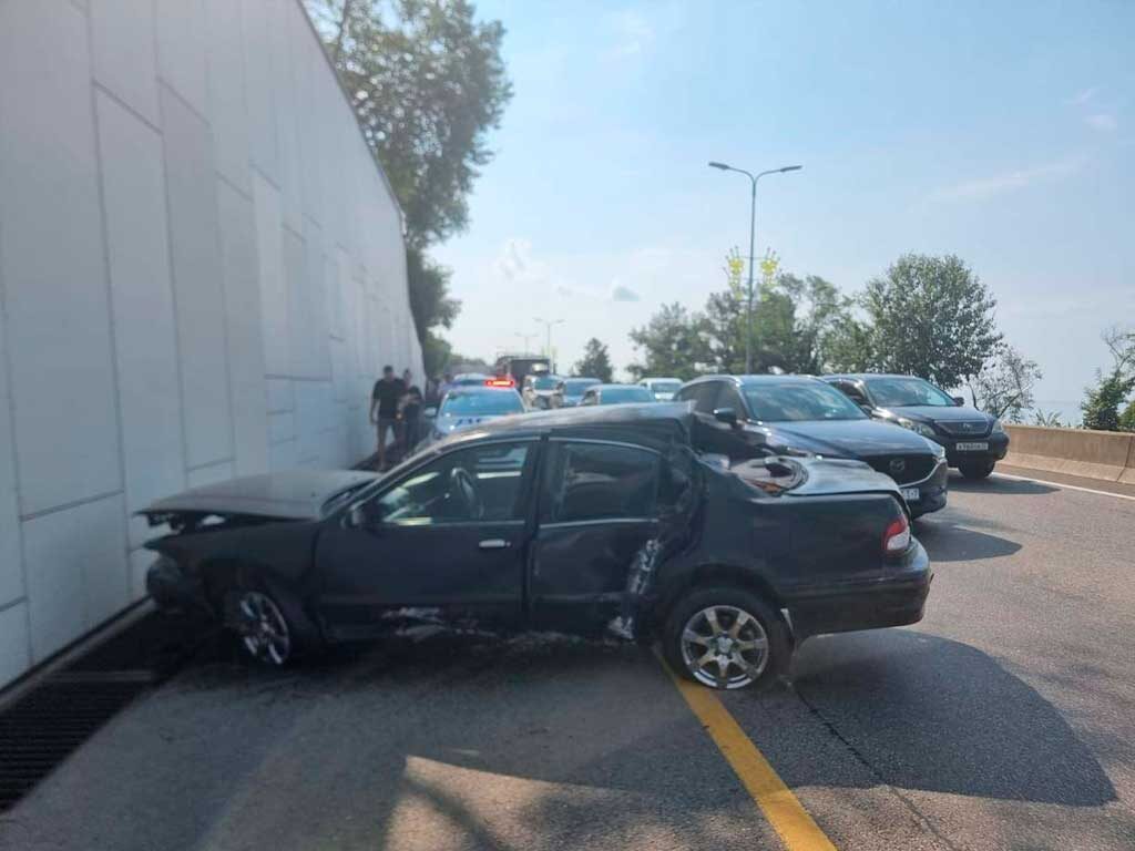 Виновником происшествия стал водитель «Ниссан», ехавший по верхнему ярусу дороги, предварительным данным, с превышением скорости. Он допустил столкновение с двумя попутными иномарками, а затем, окончательно потеряв управление, протаранил столб уличного освещения и остановился у опорной стены на другой стороне проезжей части.