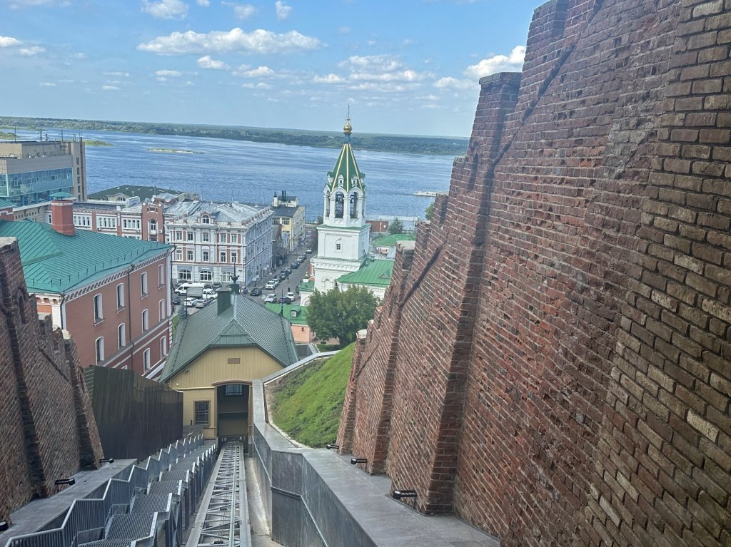 Нижегородцам показали, как пройдет поездка на новом фуникулере. Его нижняя станция расположилась у храма Иоанна Предтечи возле кремля, а верхняя — внутри крепости, около художественного музея. Этот маршрут вагончик преодолеет примерно за две минуты, пройдя в том числе под кремлевской стеной. Пока подъемник официально не открыт, проводятся его тестовые пуски. Поучаствовать в одном из них вместе с другими журналистами 23 августа удалось корреспонденту GIPERNN.RU.
