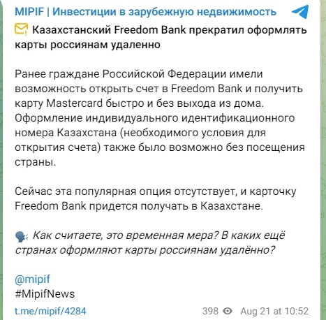 Мбанк на сегодняшний день стал первый по популярности для россиян, после события когда Фридом банк перестал открывать карты дистанционно. Действительно в тот момент была возможность на легке получить заветную карту и проводить платежи, покрывая свои потребности. Сейчас, если кто-то захочет открыть карту МБАНК лично, гражданину России придется ехать лично в офис МБАНКА и получать карту самостоятельно. Если вы позвоните в отдел поддержке МБАНКА, вам также сообщат эту новость "Оформление карт только при личном присутствии нерезидента". Это значит, что Вам придется ехать в Бишкек или иной город страны Кыргызстана в офис банк. Так как же в данный момент можно все-таки открыть карту МБАНК на данный момент?