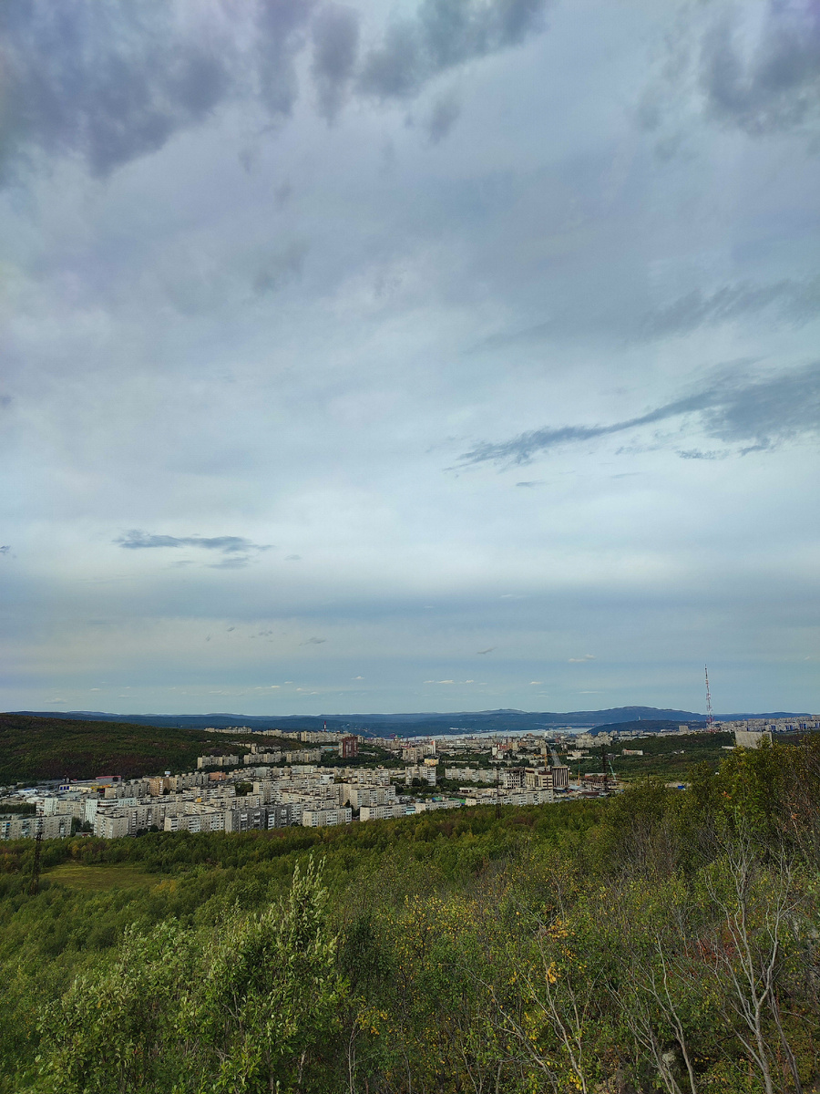 Со вчера я принял душ, выстирал необходимые вещи отдохнул и выспался. Ещё предстояло пополнить запасы продуктов, купить балон газа, и позавтракать я решил в дороге (который день уже очень хотелось шаурмы). Мурманск по своему строению немного напомнил Владивосток. Город со сложным рельефом и от того, разбросанный и неудобный для ориентирования. Пока нашёл нужные магазины, позавтракал и выпутался из его холмистых, извилистых улочек на трассу, был уже обед. До Териберки 120км не известной дороги, которая вначале подстраивала сюрпризы, плутая по горам, поросшим чем-то похожим на деревья, затем долинами залитыми озёрами на разных ярусах, а позже асфальтом больше похожим на его отсутствие. К вечеру деревья исчезли совсем, а их место заняла целая долина ветряных мельниц-генераторов. Белые спущенные рукава в асинхронном танце, резали со свистом румяный, но уже холодный вечерний воздух. От этого ветренного представления дорога свернула ровно на север. На россыпи камней, белого ягеля,