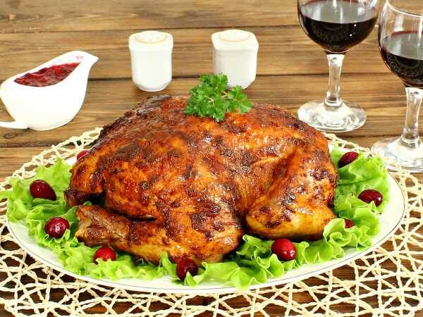 Курица (тушка) - 1700 г Маринад: Оливковое масло - 45 мл Соевый соус - 30 мл Чеснок - 30 г Соль - 15 г или по вкусу Паприка - 20 г Орегано - 1/3 ч.л. Базилик сушеный - 1 ч.л. Смесь перцев - 0,5 ч.л. 2 ч. 15 мин. Приготовим необходимые ингредиенты. Курицу (лучше брать охлажденную) хорошо моем, обсушиваем бумажными полотенцами. Приготовим маринад для курицы. Для этого в миске соединяем чеснок, пропущенный через пресс, смесь перцев, соль, базилик, паприку, орегано, оливковое масло и соевый соус. Попробуйте маринад на соль, при желании можете добавить еще по своему вкусу. Приготовленной смесью равномерно обмазываем тушку курицы внутри и снаружи. Затем укладываем желательно в глубокую емкость, прикрываем крышкой или пленкой и ставим в холодильник на несколько часов, а можно и на ночь. На лист фольги, сложенный вдвое, выкладываем замаринованную птицу грудкой вниз. Выливаем оставшийся маринад на тушку, затем герметично заворачиваем ее в фольгу и отправляем в разогретый до 200 градусов духово