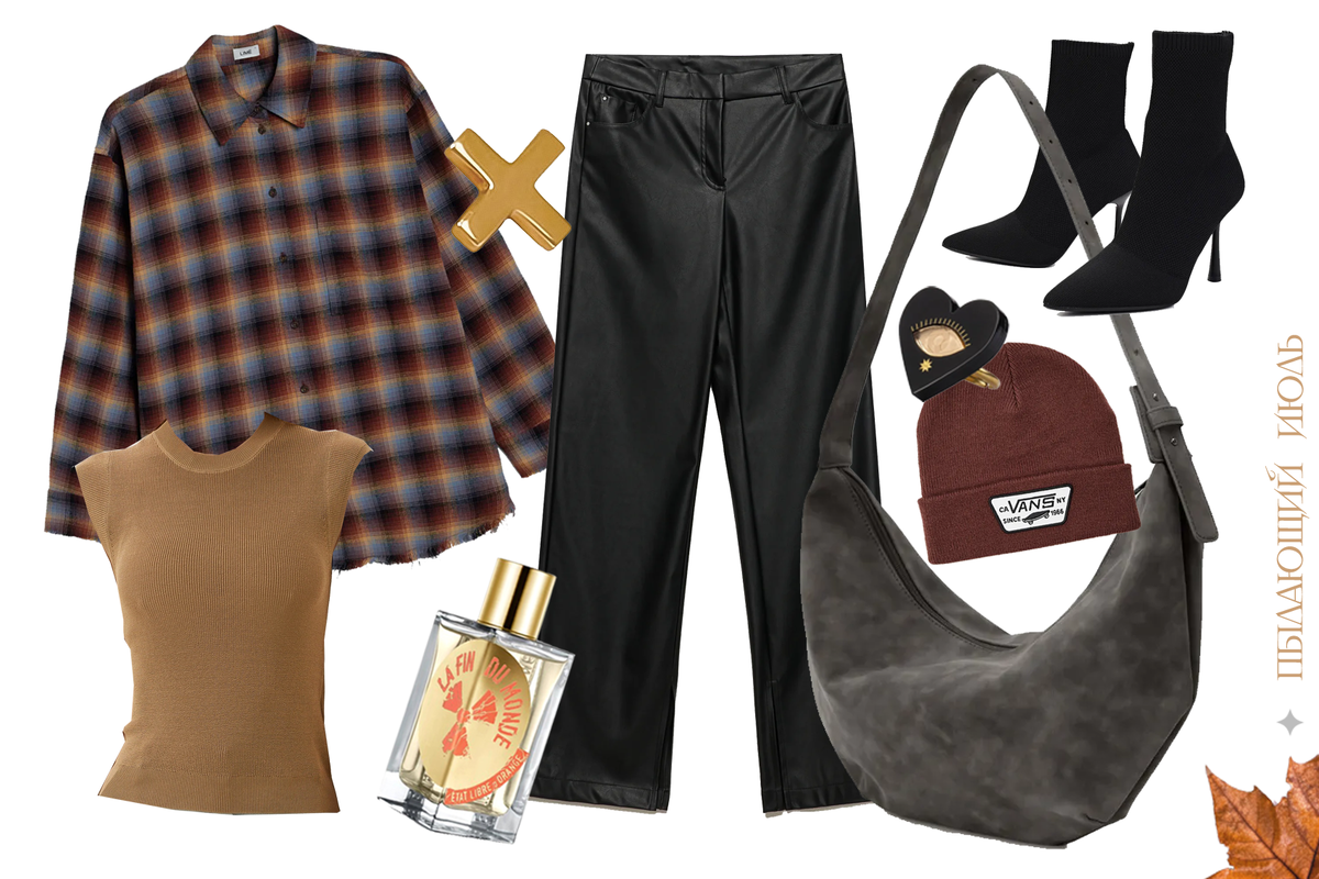 Как-то раз я искала себе сумку на Озоне: перебирала и добавляла в "Избранное" самые примечательные и любопытные варианты. Сумку я уже купила, но вся эта избранная подборка вдохновила меня на создание образов с этими сумочками, чтобы добро зря не пропадало :)). Я выбрала самые интересные и дополнила их реальными вещами, которые точно так же, как и сумки, доступны сейчас [осень 2024] к покупке в магазинах. Довольно спокойный по тону и оттенкам, но разнообразный по фактурам и текстурам комплект. Гранжевая рубашка с рваными краями, кожаные брюки и замшевая сумка вместе образуют контрастный и динамичный ансамбль, который доводится до ума с помощью спокойных и однотонных вещей, а также украшений с миниатюрными золотистыми элементами. ✦ Замшевая сумка-хобо (артикул на Озоне: 1674679806)