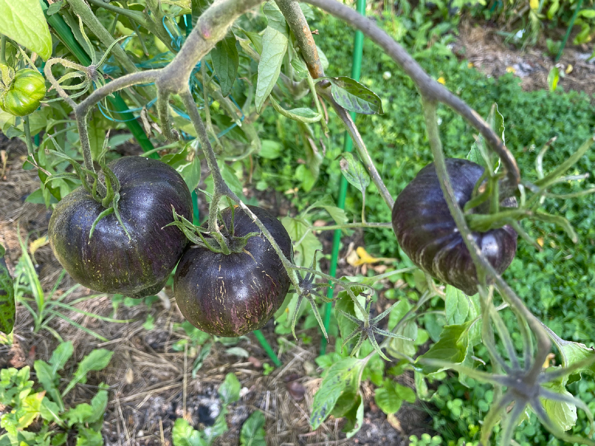 Многие уже знают о сортах томатов из серии Звездные войны. У меня в прошлом сезоне был только Бифштекс Марши. О нем писала год назад. Если интересно, посмотрите. Оставляю ссылку. Весной посеяла еще и Мятежный звездный истребитель Прайм. На зелененький, который VT 16 постоянно засматриваюсь, но семена еще не приобрела. Истребитель Прайм в этом сезоне у меня поздно спеет. Высадила, как и все, 18 мая сразу в открытый грунт. По два растения разного сорта около одной опоры. Мульчирую мелкой скошенной травой. Не везет этому кустику у меня. Сформировала в один стебель. Макушку ему случайно обломила, а потом еще нечаянно и второй пасынок с него убрала. Вырос примерно до 1,5 метра. На верхних кистях ничего не завязалось. Так что урожай получился очень маленький. Зато кустик на моей грядке не болеет. Вершинной гнили нет и фитофторы тоже. Другие растения уже заболели. Кто то раньше, а кто то позже. Сейчас уже почти конец августа а на томате Истребитель дозревают помидоры. Не расстра