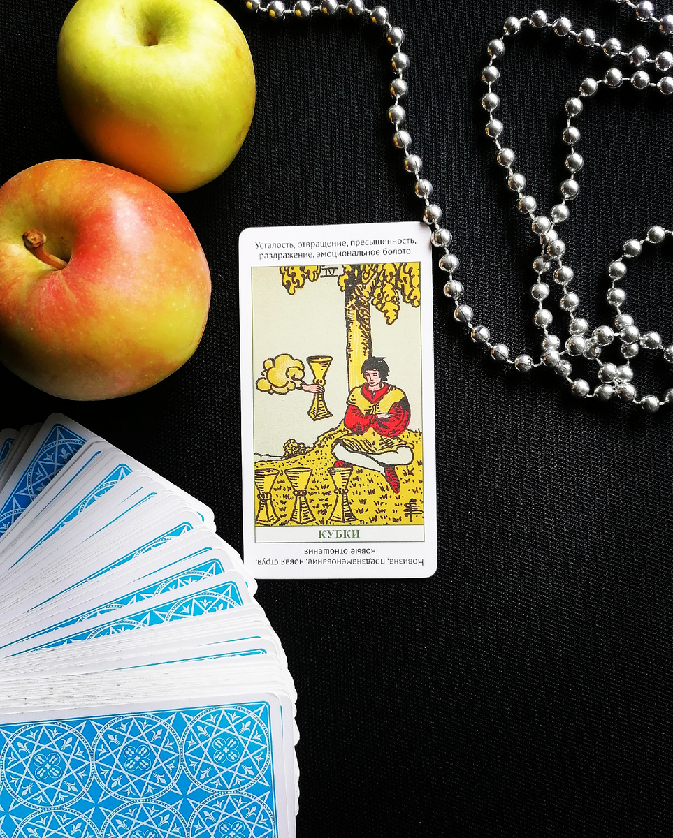 27.08.2024. Пропала я с дзена... Не могла зайти к себе на канал! Билась-билась, бесполезно. Сегодня додумалась: удалила приложение, установила заново. Зашла. Сейчас печатаю с телефона, смотрю на ноутбук и думаю: и этот человек хочет зарабатывать на блоге... М-да...🤦 Тем не менее, продолжаем. Карта сегодняшнего дня - Четвёрка Кубков. ♦️Поздравляю, вас сегодня всё достало! ♦️Вы думете: "да сколько можно-то, а?!" ♦️Даже если случится что-то хорошее, вы решите, что это как-то подозрительно.😁 ♦️При этом, судьба сегодня решит сделать вам подарок. Кому-то она подарит дополнительный рабочий час, а кому-то новое знакомство... Тут уж не угадаешь.🤷 В первом случае вы подумаете: "да штоб вы все провалились!", во втором: "ну не... додик какой-то". ♦️Вы целый день будете ходить с подобным лицом, отпугивая от себя коллег и случайных прохожих: А вечером, если рука из облака протянет вам кубок с холодненьким просекко, не отказывайтесь. Просто расслабьтесь. Только не сильно, а то завтра на работ