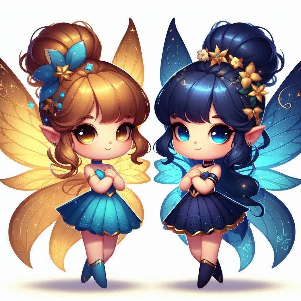 В далёком волшебном лесу, где светили яркие звёзды даже днём, жили две феи — Луна и Зора. Луна была феей ночи, её крылья переливались темно-синим цветом, как ночное небо, а волосы сверкали, как звёзды. Зора, в свою очередь, была феей дня, её крылья были ярко-жёлтыми, как солнечные лучи, а волосы сияли, как золотистый свет. Несмотря на то, что они были совершенно разными, Луна и Зора были лучшими подругами. Они всегда помогали друг другу и вместе исследовали лес, собирая волшебные травы и цветы. Однажды, во время одной из своих прогулок, они услышали грустный голос. Подойдя ближе, они увидели, что маленький цветок, который рос на поляне, плакал. — Почему ты плачешь, маленький цветок? — спросила Луна. — Я потерял свой волшебный свет, — ответил цветок. — Без него я не смогу расти и радовать лес. Феи переглянулись и решили помочь цветку. Они знали, что волшебный свет можно найти только в самом сердце леса, где растёт Древо Жизни. Но путь туда был полон испытаний. — Мы должны быть ос