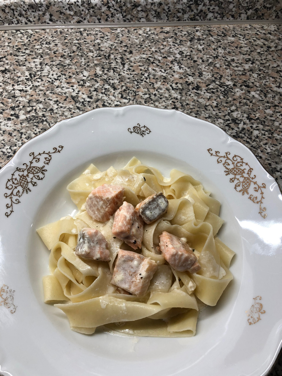 - Пока наш сливочно-рыбный соус настаивается, самое время для наших фетучини. На 1 л воды 1 ст л соли.