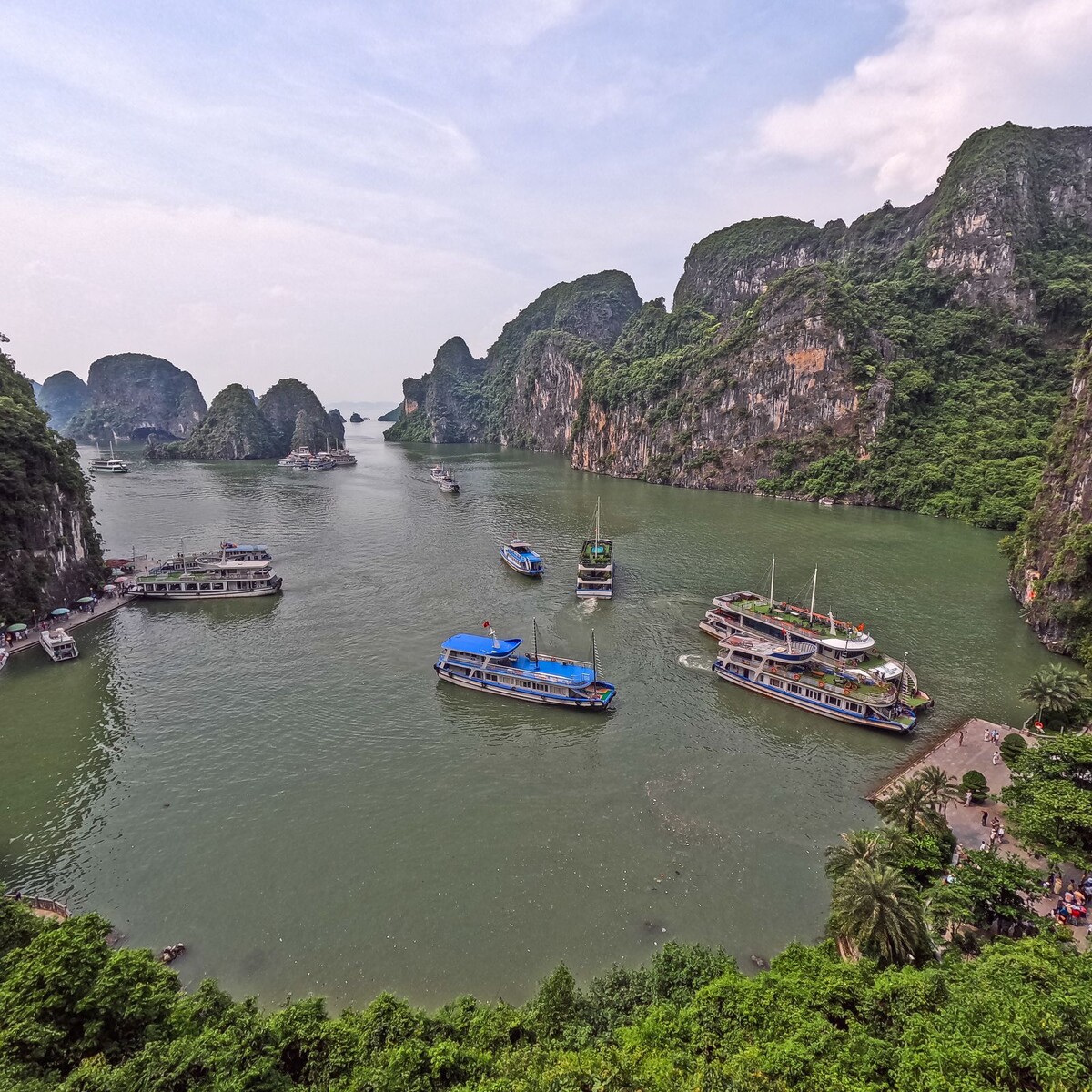 Бухта Халонг (Вьетнам) – считается одной из наиболее красивых бухт во всём мире, а в 2011 году даже вошла в число современных семи природных чудес света. Расположена на северо-востоке страны и включает почти 2000 островов, большинство из которых необитаемы. Природный ландшафт здесь чрезвычайно разнообразен – скалы, пещеры и гроты, коралловые рифы, известняковый карст и песчаные пляжи. В 1994 году Халонг был внесен в список объектов всемирного наследия ЮНЕСКО. Мои дети Вадим и Маша, путешествуя по Вьетнаму, не забывали сделать максимальное количество фотографий и видео, чтобы я смогла хотя бы виртуально посмотреть мир и иметь представление о самых красивых и интересных местах этой страны, где я тоже была однажды. А я не могу не поделиться этой красотой со своими читателями! Миллионы лет назад морские волны вторглись на прибрежную равнину, изобилующую известняковыми скалами. Большинство скал в Халонге покрыто шапками зелени, на многих из них встречаются глубокие карстовые пещеры, х