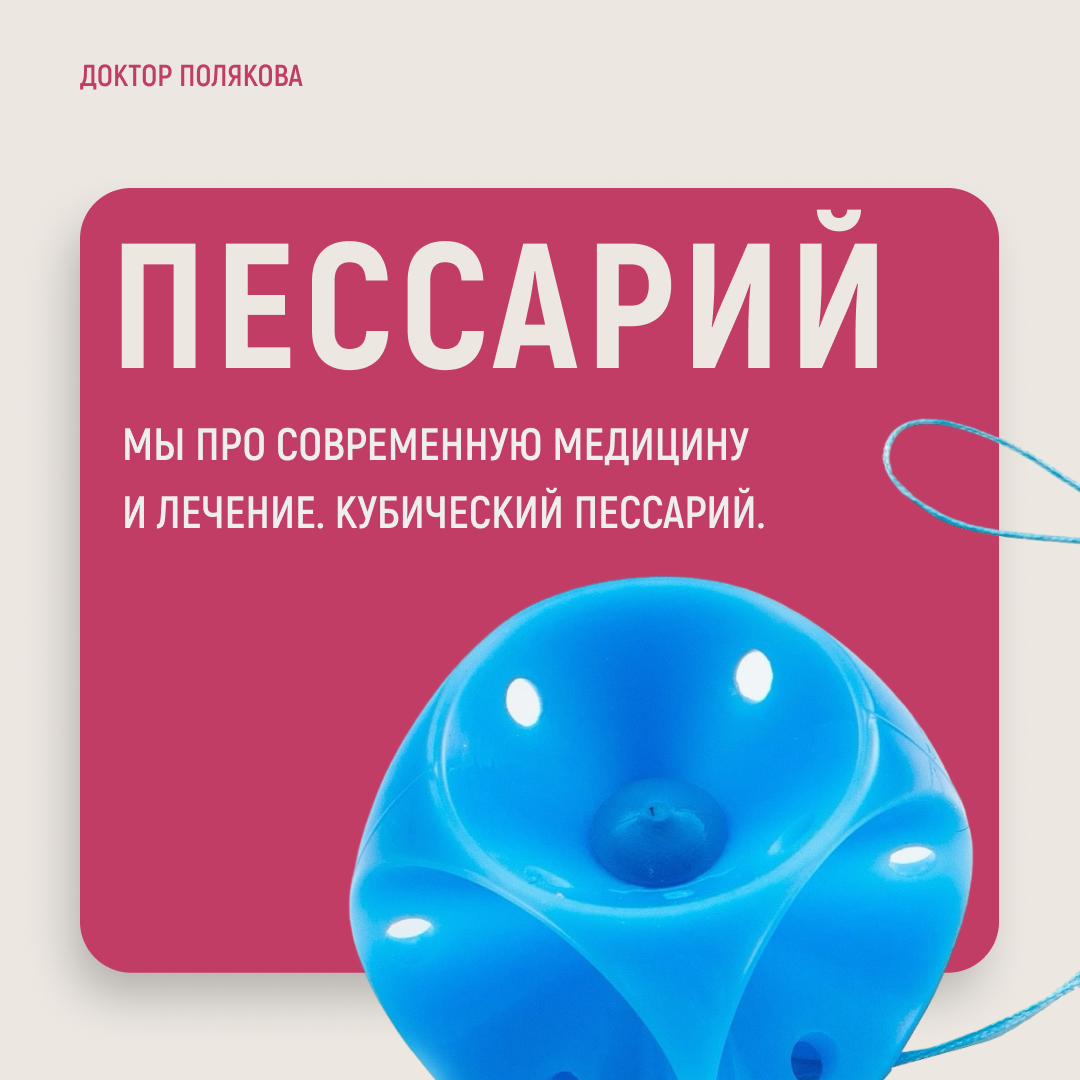 На приёме поставлен диагноз: опущение стенок влагалища 2-3 степени. Врач предлагает операцию. Однако, оперироваться нет желания, т.к: 👎 понимаешь возможность повторения 👎 нет возможности проходить послеоперационную реабилитацию 👎 в доме лежачий родственник и ты не можешь ограничить подъём тяжёлого 👎 огород, дача - любовь навсегда. Вёдра, копка картошки, грядки не могут оказаться брошенными 👎 есть сопутствующие заболевания: инсульт, сахарный диабет и тд 👎 уже была операция на тазовом дне, но возникли последствия 👎 просто не хочется под нож На приёме я всегда даю возможность выбора своим пациентам, объясняю, что помимо операции есть не хирургические решения. Пессарий. При этом слове сразу возникает в голове картина: бабушка - аптекарша - резиновый пончик разных цветов, похожий на эспандер - "вставим кольцо". Брррр 🥶 Мы про современную медицину и лечение. Кубический пессарий. Мягкий, силиконовый, удобно подбирать, удобно обучить пациентку, удобно пользоваться самой без помощи врач