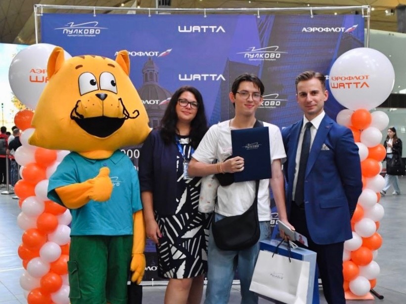 В подарок 1-миллионному пассажиру, уроженцу Владивостока Александру, вручили сертификат на посещение бизнес-зала Пулково, модель самолета и сувениры от авиакомпании.