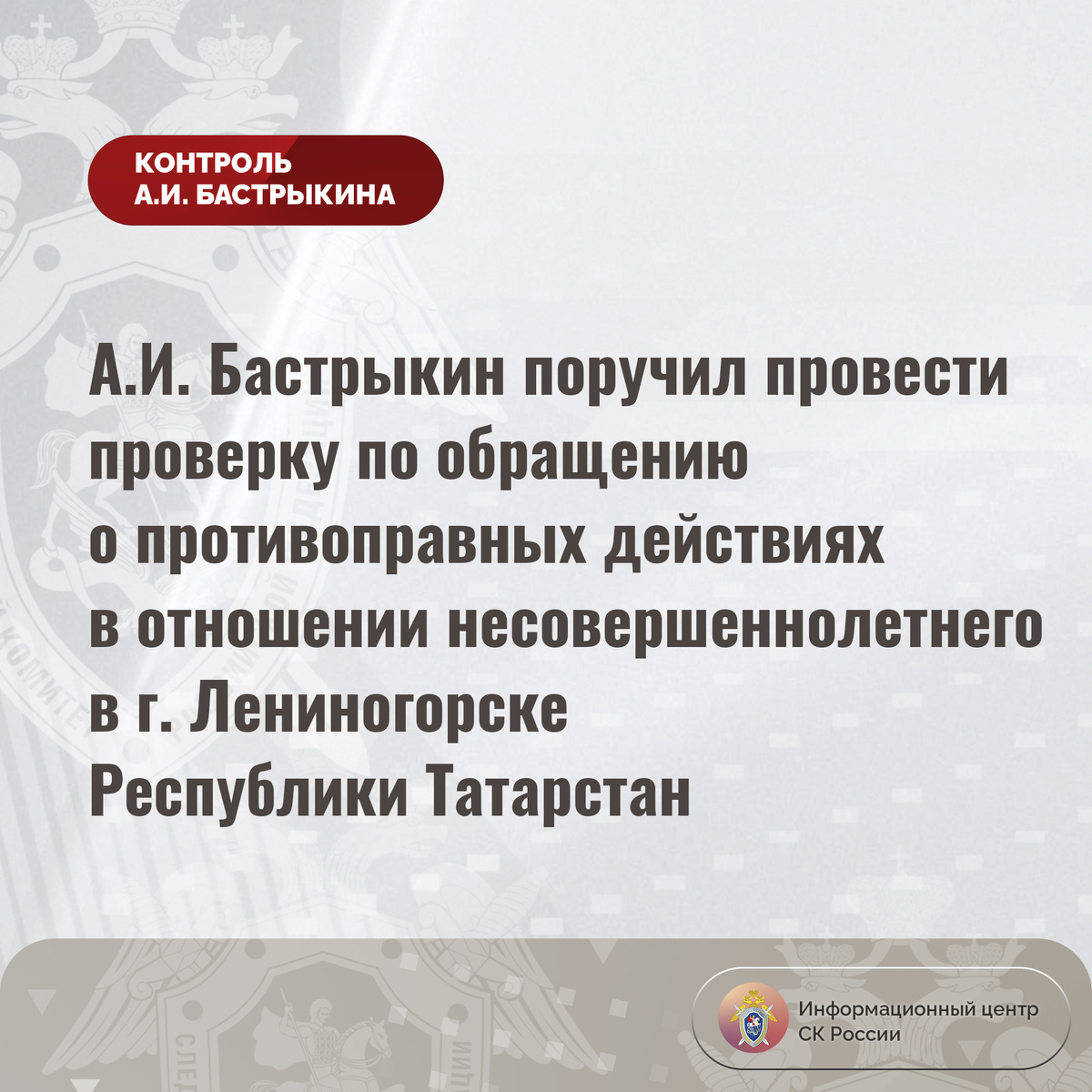 #СледственныйКомитет #СКРоссии #СКР #ИЦСКР #ИнформационныйЦентр #АлександрБастрыкин #ПредседательСКР #КонтрольПредседателяСКР #КомментарийКонтроль #Татарстан