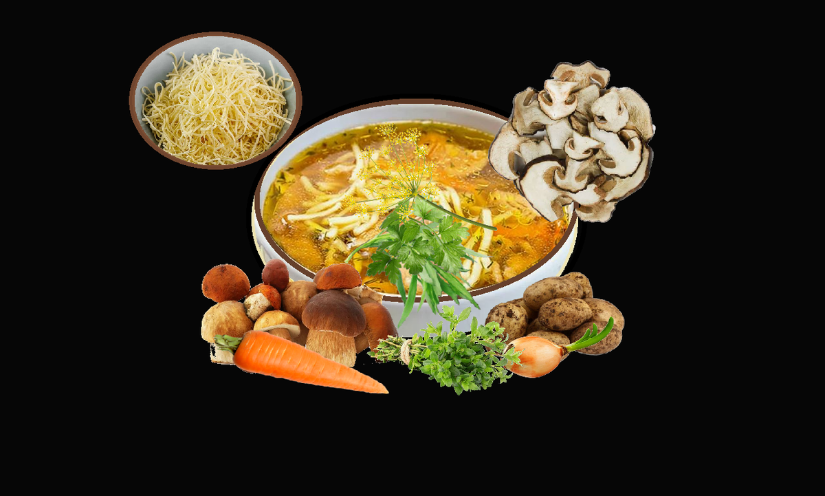 Суп с белыми грибами и домашней лапшой