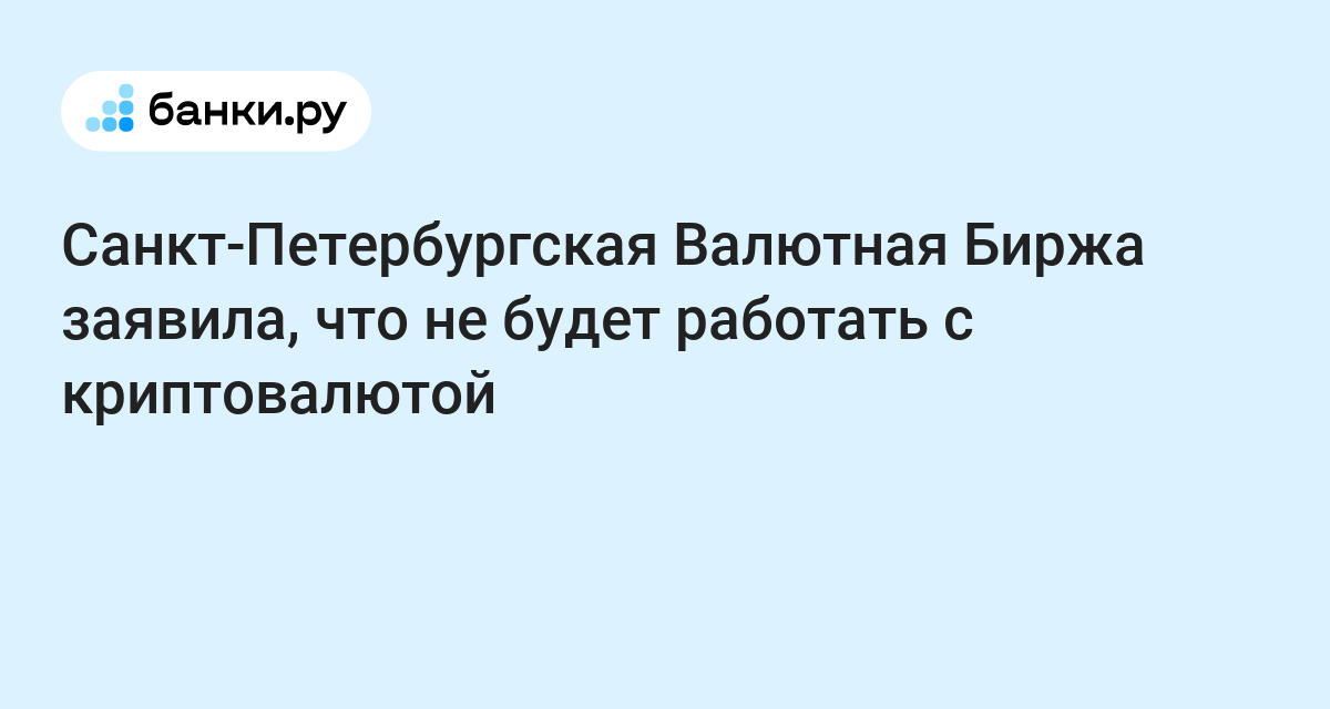 «Появившиеся в ряде СМИ сообщения о том, что Санкт-Петербургская валютная биржа планирует стать одной из площадок по торговле криптоактивами, не соответствуют действительности. Утвержденная стратегия развития ориентирована на развитие собственных продуктов и сервисов на денежном и фондовом рынках и не предполагает предоставления каких-либо сервисов, связанных с криптовалютами», — говорится в заявлении СПВБ.