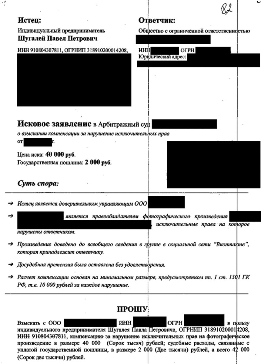 Если всё это есть, добиться отказа в исковом заявлении вряд ли получится, и работать нужно будет над максимальным снижением размера компенсации, истребуемой ИП Шугалей П.П.