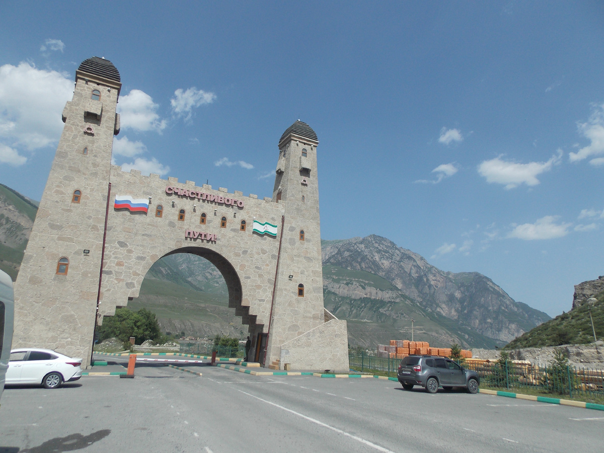 Во второй день пребывания во Владикавказе я опять отправилась в горы, но теперь уже в Ингушетию. Республика Ингушетия граничит с Северной Осетией, от Владикавказа меньше двух часов в пути, и находится на границе с Грузией. Так как это приграничная зона, необходимо взять с собой паспорт. Въезд в республику. Погранпост Мы не заезжали в города и столицу Ингушетии Магас. Это была поездка именно в горы. И это было невероятно захватывающе. Для меня открытием эта поездка стала настоящим открытием. Путевая экскурсия была очень интересной, я узнала много нового. Как и накануне, во время поездки по Осетии. Башни, архитектура, природа, история... Все это не оставляет равнодушным. А какой воздух в горах! Речь на табличке идет именно об этой башне Смотровая площадка Домик в горах, где была остановка на обед. Еще одно горное селение Один из древних хармов Здесь нас застал дождь Еще одна остановка. Впечатляет, не правда ли? сразу припоминаются разные древние легенды и сказки.