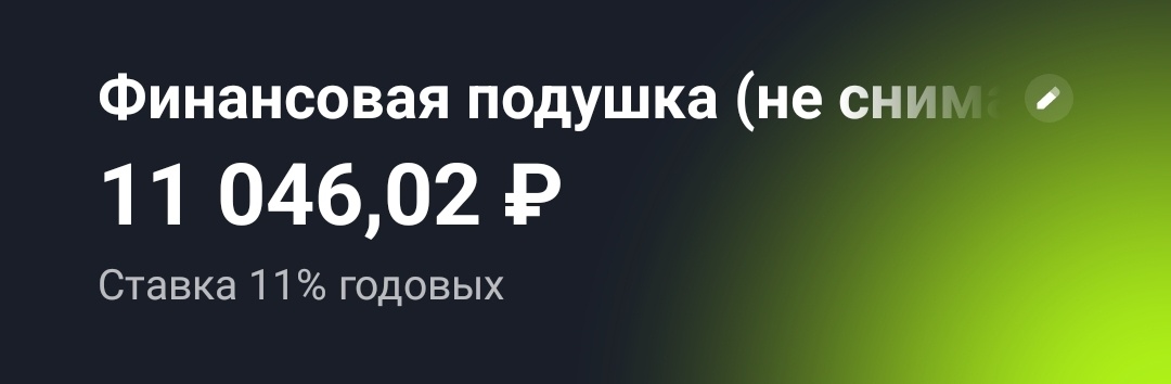 Итого на накопительном счету 11 046₽ с учётом накопленных процентов, пару раз я великодушно переводила не тысячу, а целых две. Потому что больше - можно, меньше - нельзя.