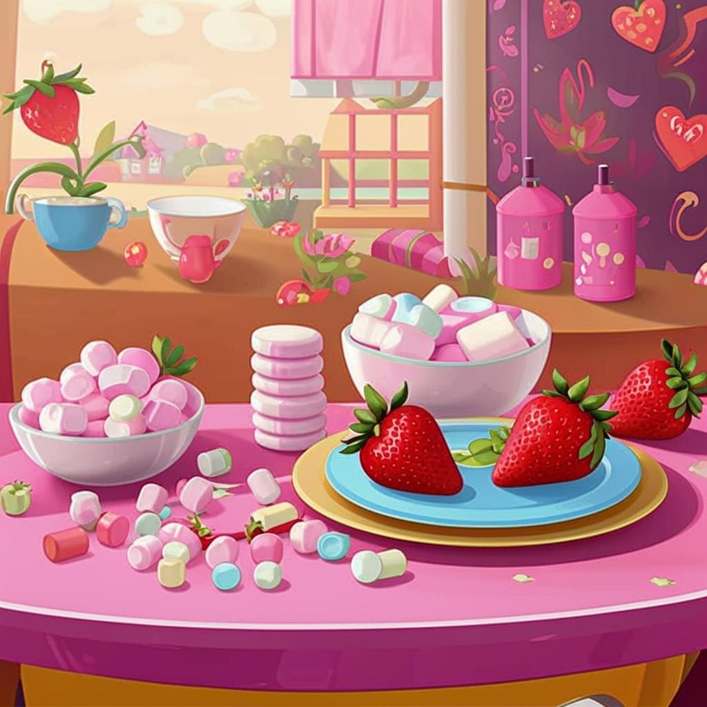Клубничный зефир . Однажды мы решили сделать что-то необычное — клубничный зефир! Итак, Мишель с мамой приготовили все необходимые ингредиенты: - Клубника — 500 г - Сахар — 300 г - Вода — 150 мл - Гелем для приготовления желе или желатин — 15 г - Лимонный сок — 1 ст. ложка - Порошок сахарной пудры — для обсыпки Сперва они тщательно промыли клубнику и убрали зеленые хвостики. Затем мама и Мишель поставили клубнику в кастрюлю и добавили немного сахара. Они начали тушить клубнику на среднем огне, пока она не стала мягкой. После этого мама взбила клубничную массу с помощью блендера, чтобы получить однородное пюре. В это время они замочили желатин в холодной воде, чтобы он разбух. Как только клубничное пюре остыло, к нему добавили лимонный сок и разбухший желатин. Теперь самое интересное! Мишель взбила оставшийся сахар с водой до состояния мягких пиков. Мама объяснила, что это нужно для создания воздушной текстуры зефира. Вместе они аккуратно добавили клубничное пюре к взбитому сахар