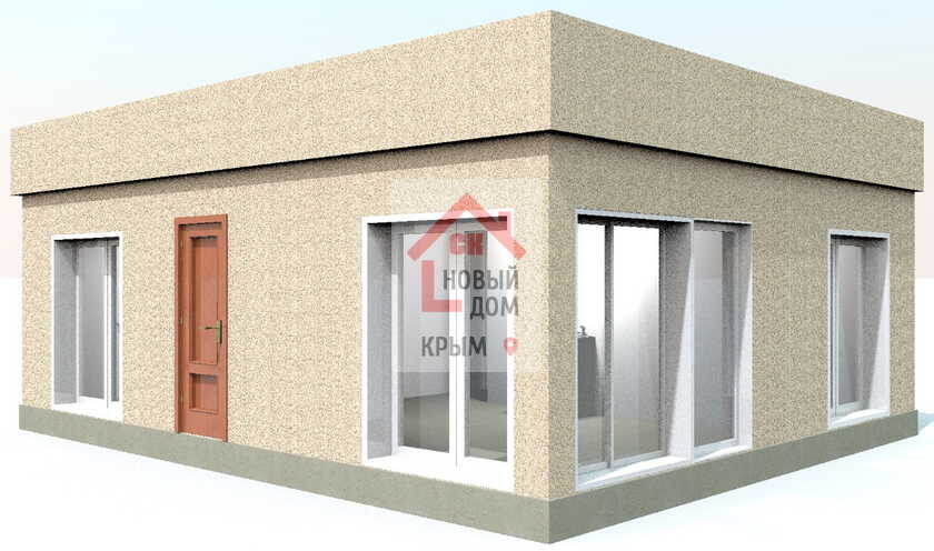 Проект дома 54 м.кв 2 спальни 1 этаж 7 на 8 небольшой компактный с плоской крышей