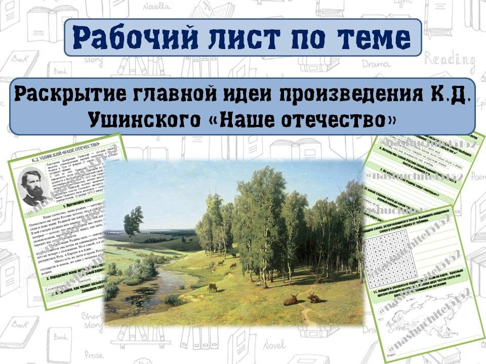Рабочий лист по литературному чтению "Раскрытие главной идеи произведения К.Д. Ушинского «Наше отечество»: ». 3 класс. Отработка навыков анализа произведения с помощью наводящих вопросов. Приобрести рабочий лист можно по ссылке:https://vk.com/market-216254584?screen=group&w=product-216254584_14473403%2Fquery