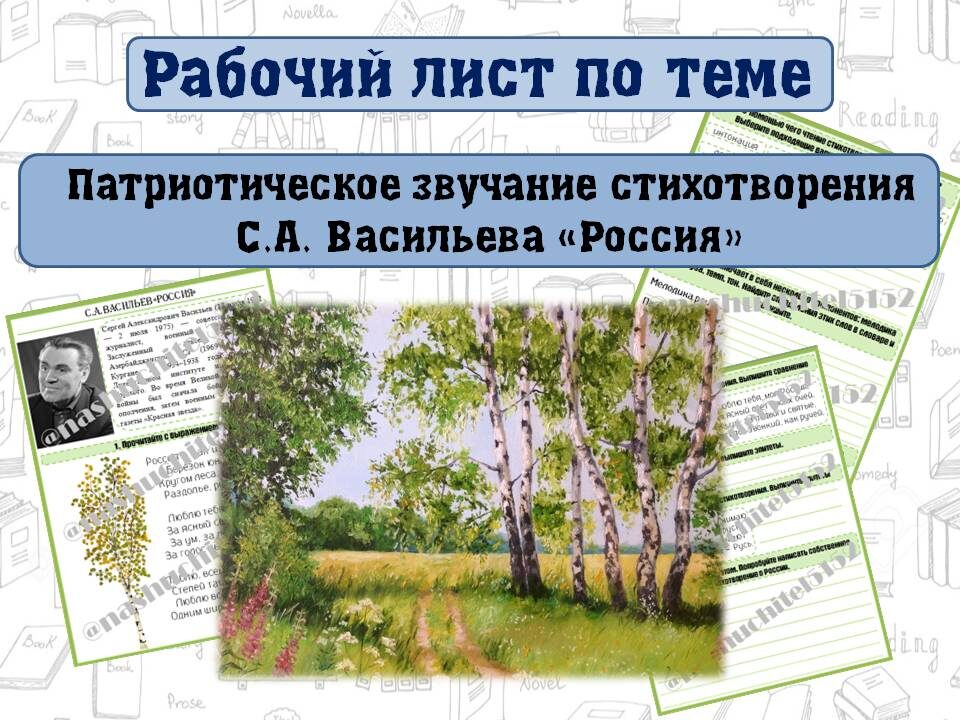 Рабочий лист по литературному чтению "Патриотическое звучание стихотворения С.А. Васильева «Россия»". 3 класс. Отработка навыков анализа произведения с помощью наводящих вопросов. Повторение средств выразительности в литературе. Приобрести рабочий лист можно по ссылке:https://vk.com/market-216254584?screen=group&w=product-216254584_14473568%2Fquery