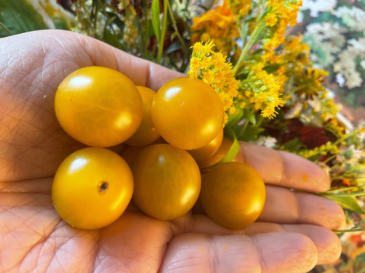 В этом сезоне не могла выбрать на сезон 2024 из двух томатов черри Краски f1 (от Партнер) и Летнее солнце (Самер сан) и поэтому посеяла оба. Решила сравнить. Сравнивала, сравнивала все лето, но так и не поняла какой же из них лучше и чем они отличаются. Понимаю только, что один томат сортовой, а второй гибрид. В конце сезона, правда, Черри краски f1 заболел позже, чем Летнее солнце (Самер сан). И верхние кисти у Красок были пообильнее. Но, каждый томат рос у меня по одному кусту. Поэтому не могу сделать точные выводы о двух этих томатах. По внешнему виду, по вкусу, по плотности, по размеру они одинаковые. Это Летнее солнце (Самер сан) А это Крпски f1 Вот для сравнения они среди других черри. По весу даже их отдельно взвешивать не стала. Они одинаковые. И в разрезе они одинаковые. Уже даже и забыла какой где. И по вкусу они одинаковые. Да, они сладкие с приятным томатным томатным вкусом. Меня, правда, немного смущает то, что начали созревать поздновато и долго дозревают. Вроде у