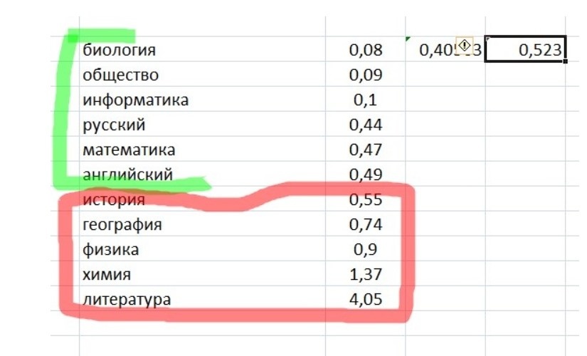 ЕГЭ всегда меняется, каждый год так или иначе его меняют. Что говорить, в этом году упростили например математику, но усложнили русский язык. Я провёл анализ того что по идее должны были изменить на ЕГЭ в будущем году, это было здесь: Я предложил наиболее два вероятных исхода в усложнении или упрощении экзаменов. Напомню второй из них, зелёные - упрощение, красное- усложнение: Но вчера вышло новое сообщение от Рособрнадзора в котором он грядущие изменения Итак, самый сложный предмет на ЕГЭ - биология также останется самым сложным, его решили не упрощать То же самое касается и обществознания - сложность останется такой же, упрощения не будет. Географию решено не усложнять, а история итак в середине сложности распределения, то есть её неизменность это объективная реальность. Математика. С математикой в этом году очень хорошо прокатило, сложность уже снизили, и она такой же и будет на следующий год, хотя был потенциал ещё большего упрощения. Таким образом получается вот такой разброс в п