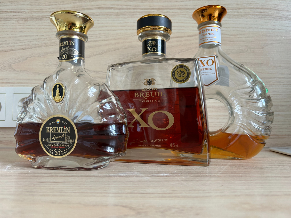 Два френча и один армянин сообразили "натроих": Kremlin Award 20 лет, Grand Breuil XO и Godet XO Terre.