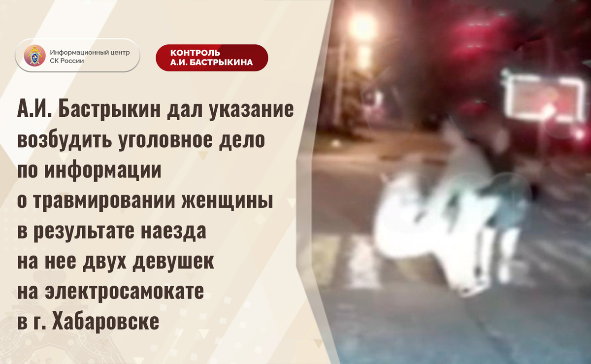 А.И. Бастрыкин дал указание возбудить уголовное дело по информации о травмировании женщины в результате наезда на нее двух девушек на электросамокате в г. Хабаровске