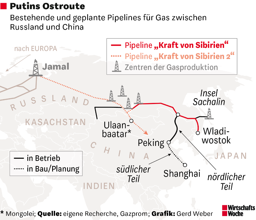 Обзор немецких медиа 🗞(+)WirtschaftsWoche в статье «Альтернативный газопровод Путина тихо умирает» рассказывает, что после начала СВО Путину нужны альтернативные покупатели газа. Предпочтительно Китай. Но необходимый для этого крупный проект, судя по всему, постепенно умирает. Уровень упоротости: повышенный 🟠 Стратегически важный российский трубопроводный проект «Сила Сибири-2» пока заморожен. Проект, предназначенный для транспортировки газа с Ямальского месторождения на западе России в Китай, имеет стратегическое значение для России после того, как Германия и другие европейские государства в значительной степени отменили его после начала российской агрессивной войны в Украине. Заявление из Монголии - ключевой транзитной страны - теперь указывает на временное прекращение реализации этих планов. Правительство этой страны недавно объявило о своих основных стратегических проектах на период с 2024 по 2028 год. Российско-китайский мегапроект не упоминается ни разу. «Мы находимся в длитель