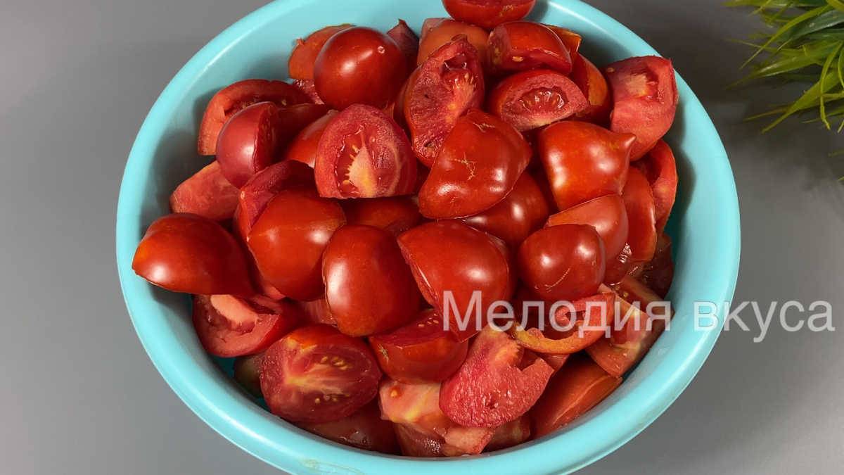 1. Помидоры нарезаем крупными дольками, пропускаем через мясорубку, переливаем получившуюся массу в большую и глубокую кастрюлю и ставим вариться на медленном огне 20 минут с момента закипания.
