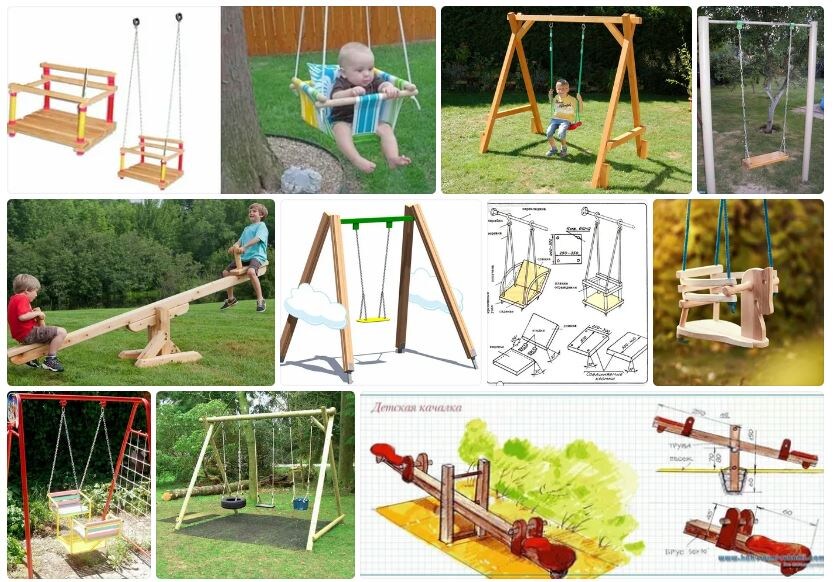 Jamie В продаже имеются уже готовые детские качели, которые нужно только собрать, но такой вариант также не очень хорош, они ничем не укреплены, и не устойчивы. Можно сделать качели собственными руками. Но в одном вы правы, столбы для качелей должны быть укреплены, для пущей безопасности, я бы качели сделала со спинкой.