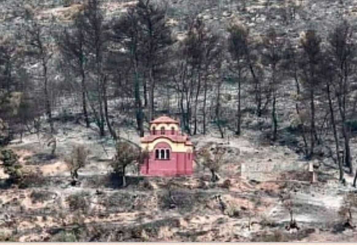 Еще одно чудо произошло с монастырем святого Давида на острове Эвбея, который уцелел во время пожара. Огонь отступил, когда подошел к стенам обители.