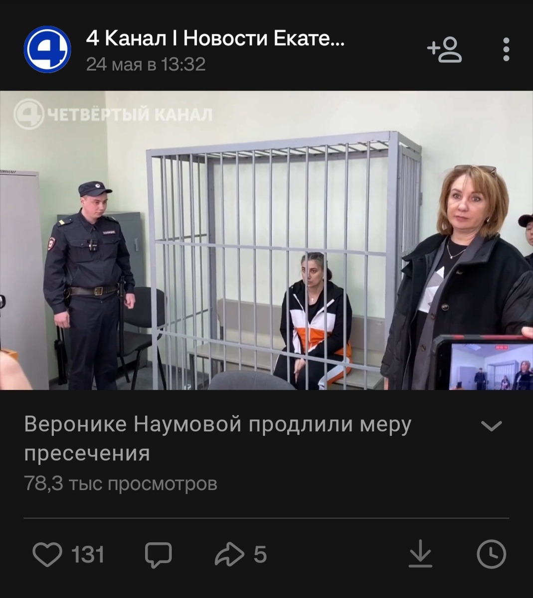 ❗❗Веронике Наумовой продлили меру пресечения. Она останется под стражей до 27 июня