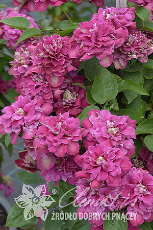 польский сорт,2023 г, обильно цветущий красным цветом. Весной цветки махровые и полумахровые, летом – одиночные. Хорошо растет на солнечных участках. Группа обрезки 2. Цветки среднего размера, 12-14 см в поперечнике, состоят из 8 чашелистиков и 40-80 тычинок. Они бордовые, снизу зеленоватые, чашелистики эллиптические, с закругленными кончиками. Тычинки состоят из желтых пыльников на желтых нитях, пестик также желтый. Махровые и полумахровые цветки появляются на прошлогодних побегах, а одиночные развиваются на новых побегах на расстоянии 40 см от основания растения. Цветение длится с мая по конец июня, а отдельные цветки могут появиться и в конце лета, в августе-сентябре. Листья темно-зеленые, полуглянцевые, как одиночные, так и составные. Лиана поднимается с помощью черешков. Компактный вид, умеренная скорость роста, достигает 1,3-1,5 м в высоту. ГДЕ САЖАТЬ: Сорт лучше всего подходит для солнечных мест. Хорошо растет на плодородных, водопроницаемых почвах, но при внесении удобрени