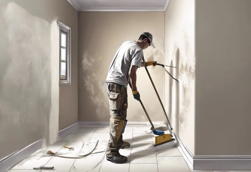 Очистка поверхности. Перед началом работ необходимо тщательно очистить поверхность гипсокартона от пыли, грязи и жировых пятен. Для этого можно использовать влажную тряпку или губку.
