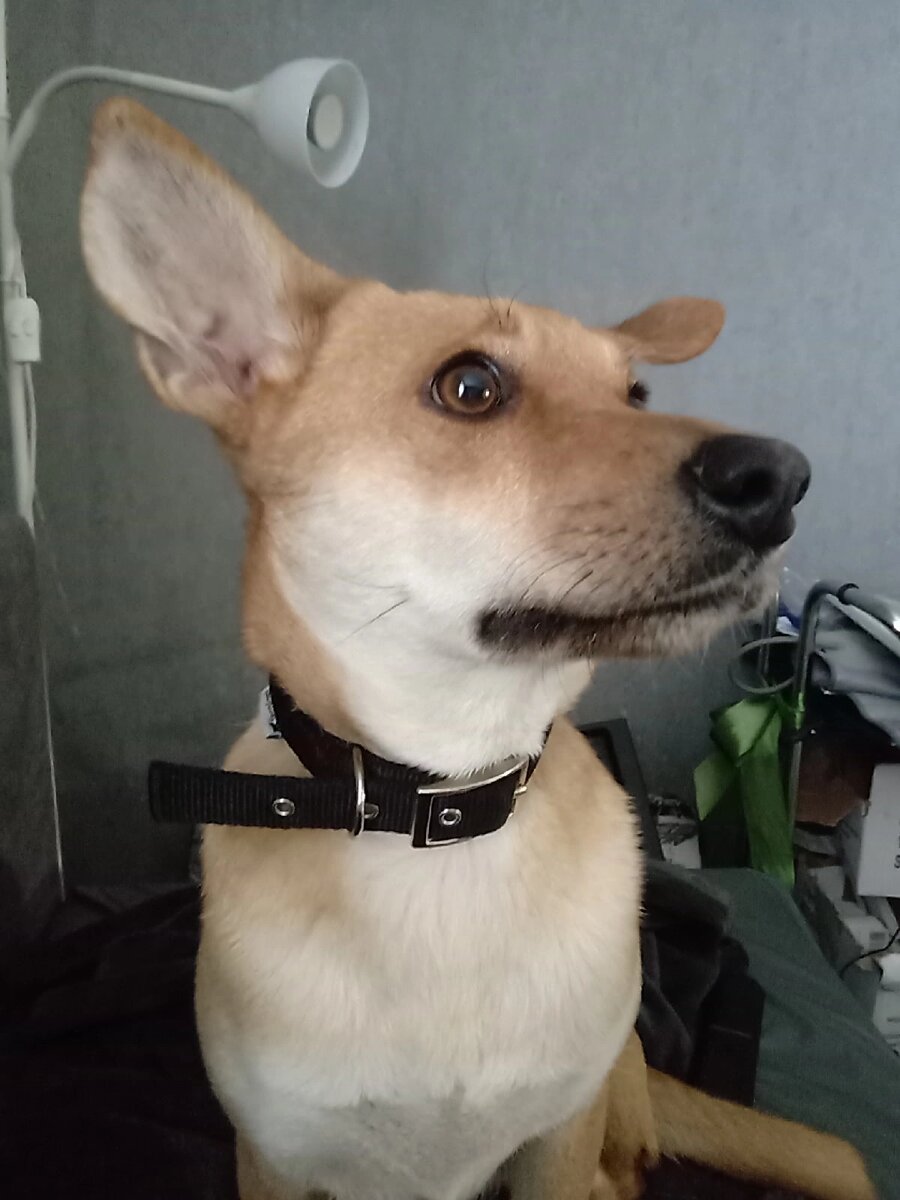 "Врождённую трусость не исправить" - это из переписки. И мне снова хочется "домахаться" до оценочной характеристики, порожденной человеческим умом. Что есть "трусость"? А в чем выражается " смелость"? И как объяснить понятие "борзость", если это не про резвость? Кааак начнем выяснять - заблудимся в коннотациях, которые, как правило, зависимы от контекста и весьма субъективны. А если без коннотаций? Есть страх, как базовая защитная эмоция у всего, наделённого лимбическрй системой, вызванная потребностью в безопасности. Есть поведение, с помощью которого эта потребность удовлетворяется. Активная самозащита и пассивная самозащита. В тяжёлых случаях - запредельное торможение. Предрасположенность к активной и пассивной реакции явно имеет наследуемый характер. Но это точно неизменно? Точно-точно? Вот прямо уверены? Знакомьтесь (кто ещë не знаком), Жуля. Происхождение неизвестно, вечный повод для досужих домыслов, в числе которых лидирует помесь сиба ину с Чебурашкой. Последнему предполож