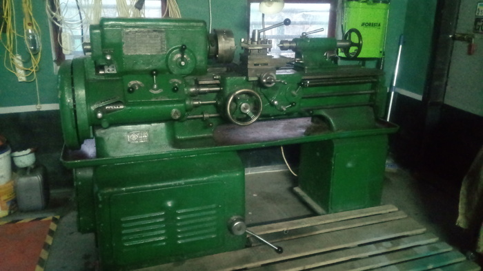 Продолжаю продолжать. Продолжаю разбирать свой станок, после фартука, продольной и поперечной подачи, я принялся разбирать коробку подач. Отсоединил валы от коробки подач, это я делал когда снимал фартук. Снимали со станка ее втроем, в сборе она весит прилично. Вместе с отцом водрузили коробку подач на верстак и я принялся ее разбирать. Первым делом выкрутил все гужоны, все этапы фотографирую, чтобы при обратной сборке было проще ориентироваться (где что и куда ставить на свои места). Валы извлекались очень затруднительно, мне показалось, что до меня туда никто не заглядывал. Штифты шестерен сидели очень плотно, подшипники на валах тоже. Из 12 подшипников оставил только радиално-упорные. Все остальные пошли под замену. В коробке стоят 1шт-207, 6шт-205, 3шт-204, 2шт- (радиально-упорные). Теперь фото самого процесса. Отсоединили коробку подач для дальнейшего ее осмотра. Станок с установленным на свое место фартуком, продольной и поперечной подачей, резцедержателем и задней бабкой. При ос